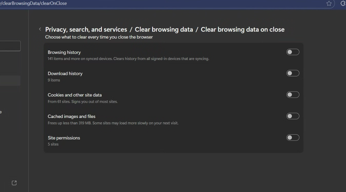 Namun terkait privasi juga ada satu hal penting yang wajib kamu tahu guys, dimana pada Edge versi 141 ini, Microsoft menghapus opsi untuk menghapus kata sandi dan data formulir otomatis melalui pengaturan “Clear browsing data on close”.