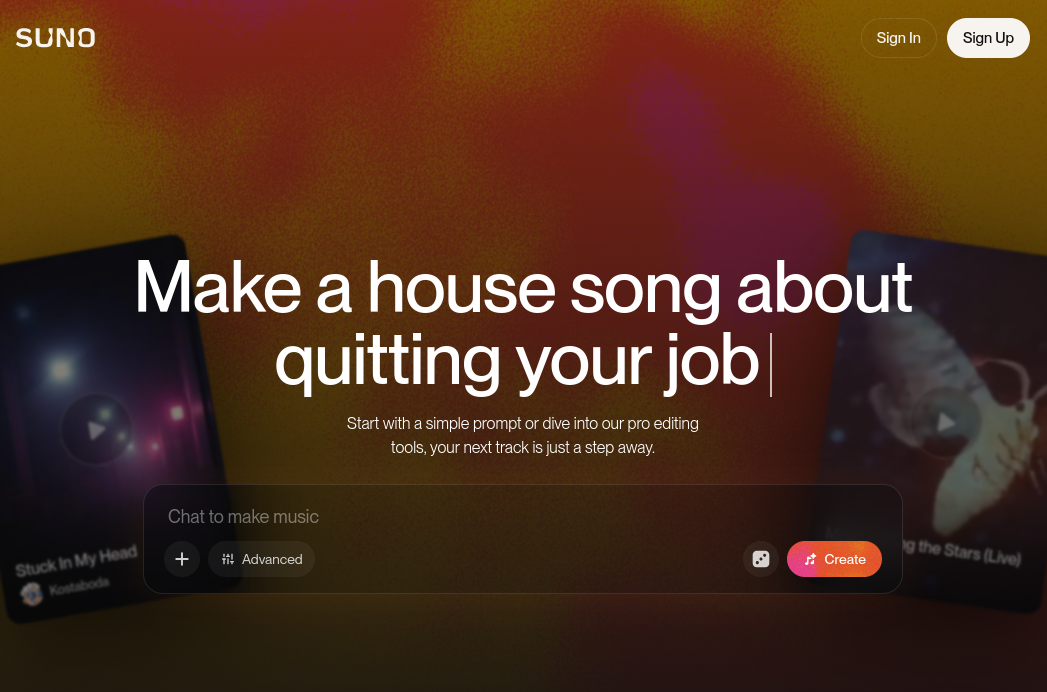 Nah untuk menggunakan Suno AI dan membuat lagu dengannya, kamu cukup masuk ke halaman Suno AI berikut dan daftar seperti biasa.