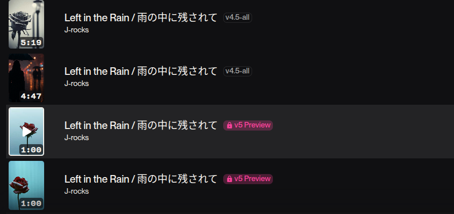 Nah karena merasa bahwa ternyata hasil Suno AI ini beneran bagus, gimana jika saya coba buat beneran lagu dengan lirik seadanya?. Oke akhirnya setelah berhayal dan mencoba mencari lirik yang pas antara bahasa Inggris dan Jepang, akhirnya jadilah lagu dengan Judul “Left in the Rain”, mengandalkan sedikit penyesuaian dengan vocal wanita karena musik ini ceritanya ini tentang wanita yang ditinggalkan ditambah dengan genre Japanese Rock, lanjut klik Create di Suno AI. Hasilnya? luar biasa, saya suka, beneran suka.