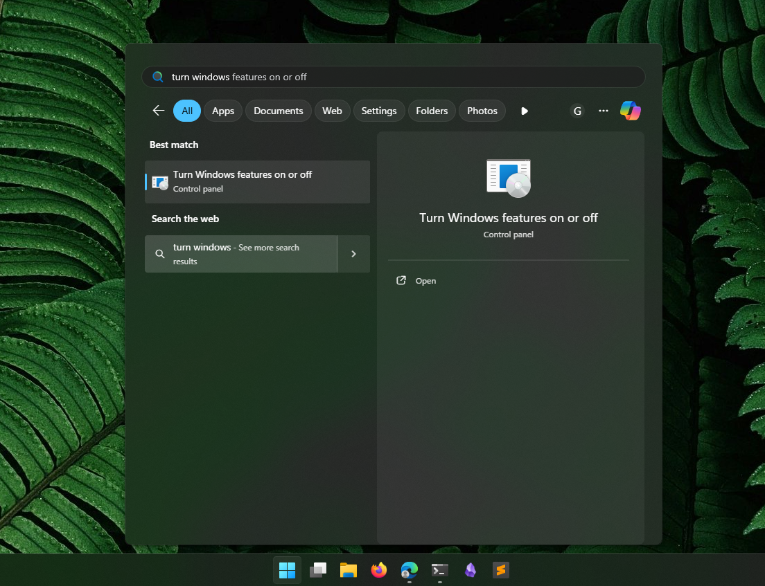 Langkah 1. Pertama silahkan kamu buka Turn Windows Features on or off.