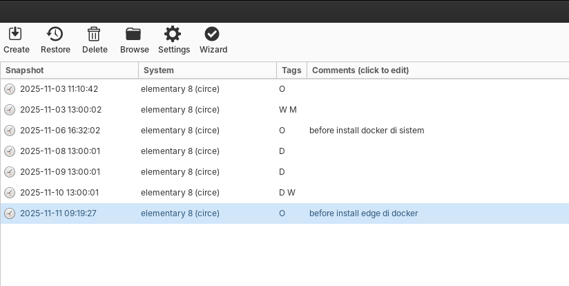 Langkah 1. Pertama mari kita buat dulu Snapshot di sistem agar jika ada apa apa, kita bisa langsung restore dengan mudah.