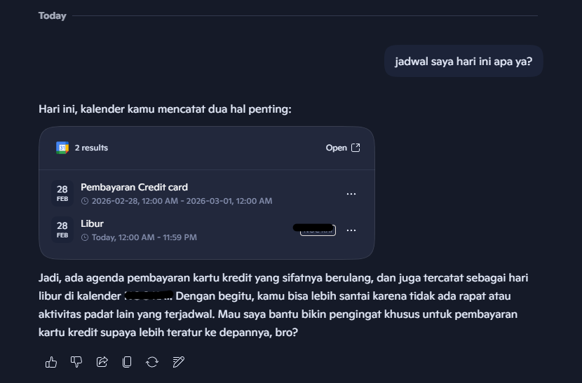 Setelah itu, kita bisa memanfaatkan Copilot untuk mengecek email tertentu, merangkum isi email, menemukan lampiran, mengecek jadwal, mencari agenda tertentu dan lainnya sesuai dengan layanan yang tadi kita telah hubungkan.