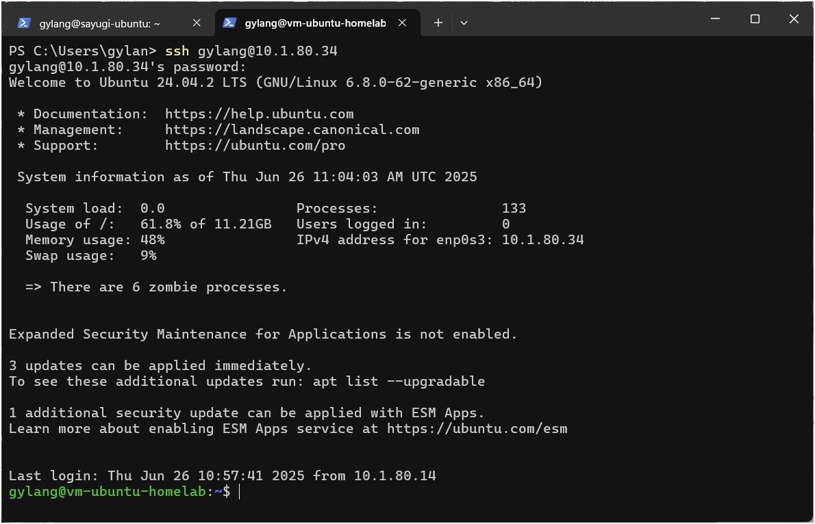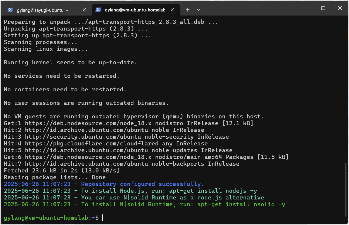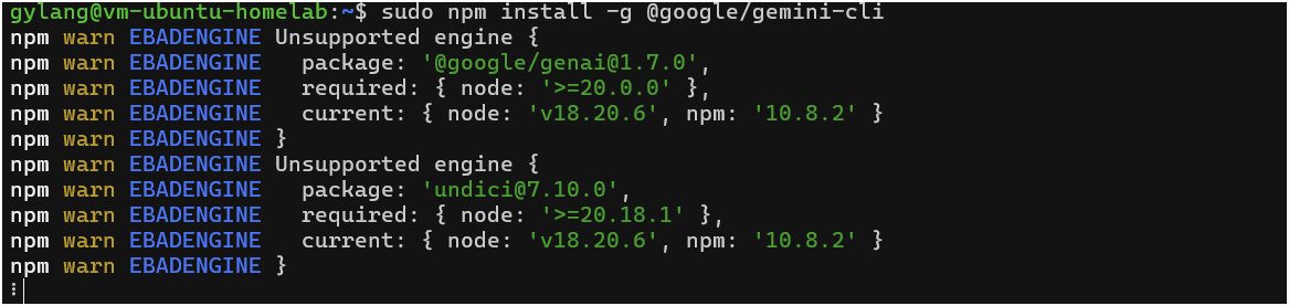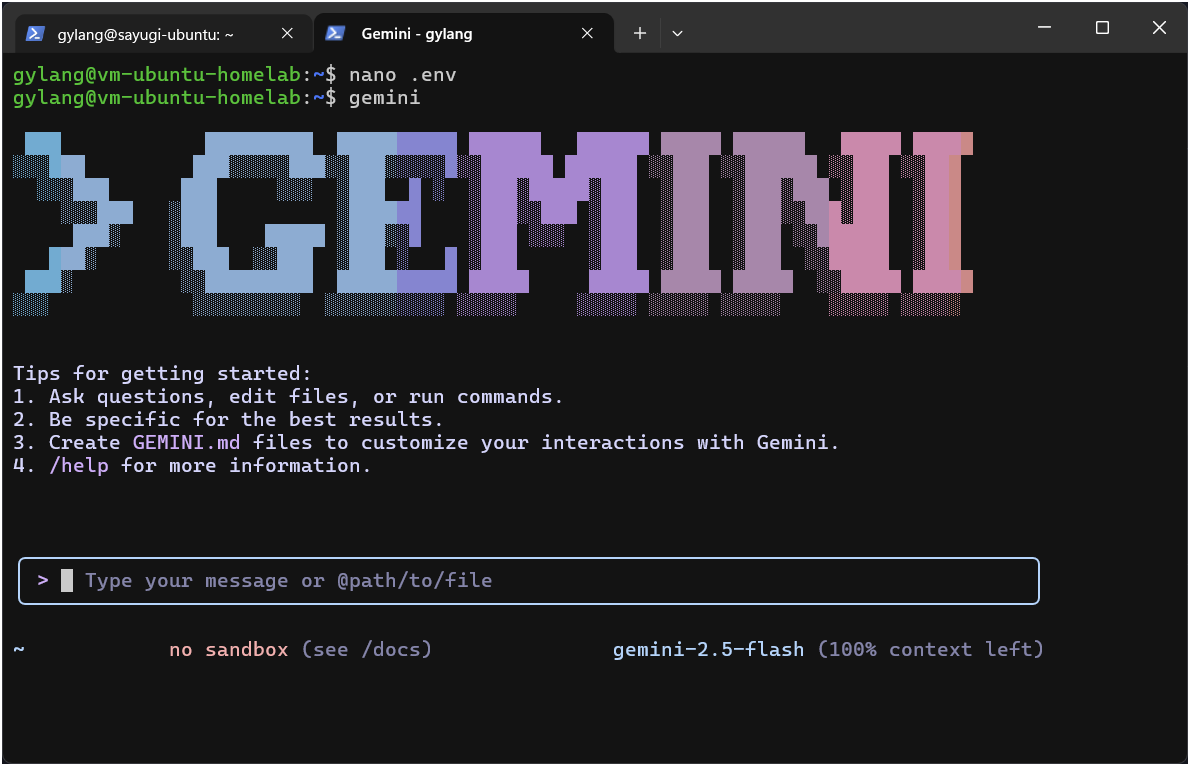 Disini saya akan mencoba melakukan instalasi Gemini CLI di vm-homelab yang saya buat, dimana vm ini menggunakan OS Ubuntu Server 24.04.2 LTS.