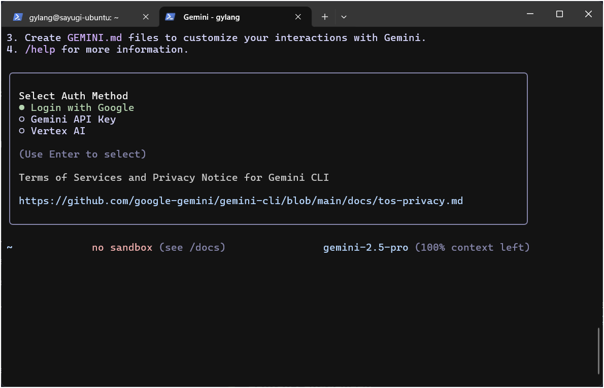 Lanjut, jika Node.js sudah terinstall, kita bisa memulai instalasi Gemini CLI dan berikut adalah langkah langkahnya.