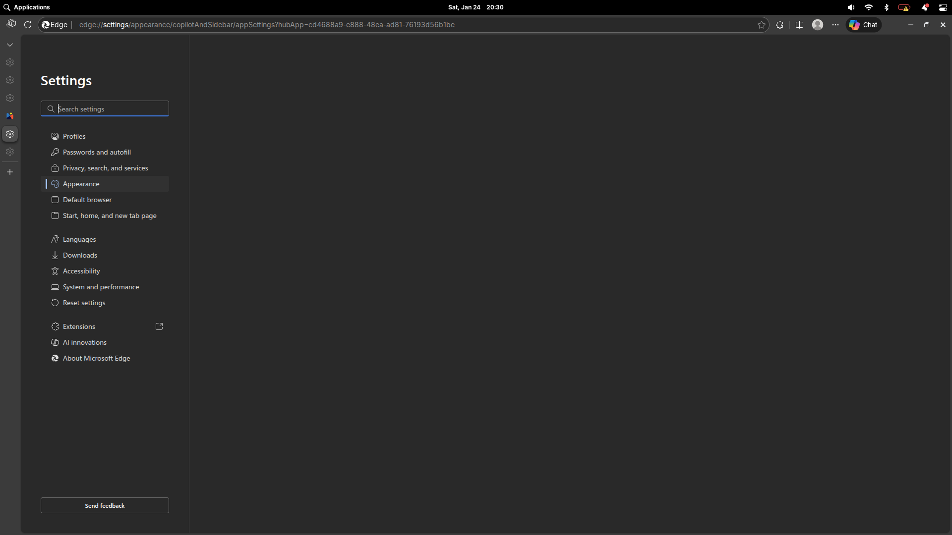 Nah setelah saya coba setup, bagian Copilot di toolbar sayangnya tidak bisa saya disable dan sembunyikan seperti di Windows. Saya bingung ini apakah bug atau bukan, karena jika kita klik akan Hide Copilot, kita akan diarahkan ke halaman blank tanpa ada apapun disana.