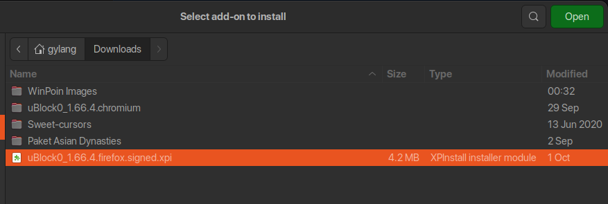 Langkah 3. Setelah itu silahkan pilih file ublock yang tadi kita download dan klik Add.
