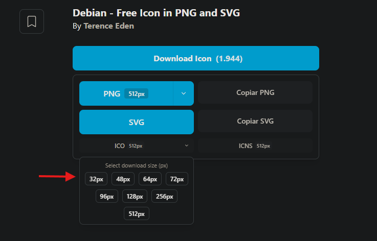 Kemudian download yang resolusi 32×32 px dan simpan di directory yang aman.