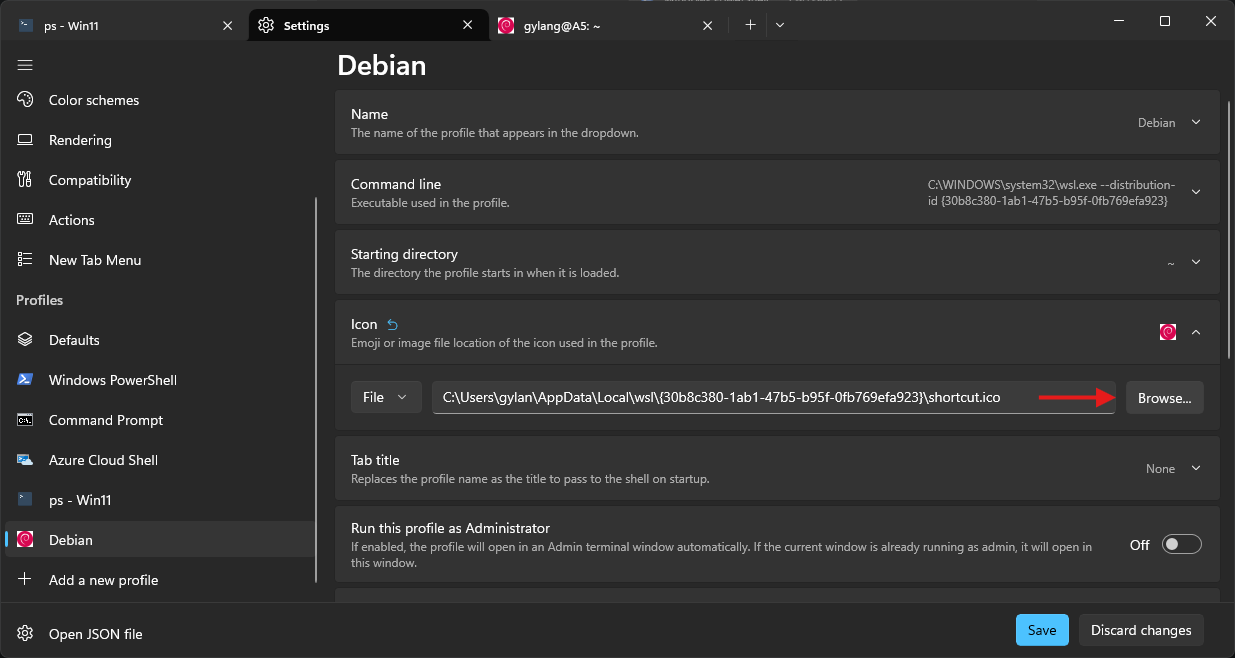 Namun perlu diingat, format gambar wajib .ico, kamu tidak bisa pakai format .png ataupun .jpeg. Dan yang pasti sih dengan tampilan yang rapi, konsisten, dan mudah dikenali bisa membuat workflow terasa lebih enak, apalagi kalau sering bekerja dengan banyak tab dan distro wsl sekaligus.