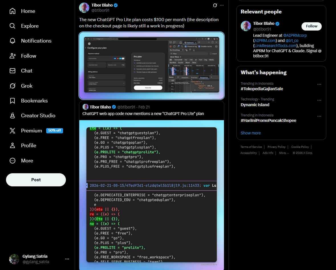 Meskipun begitu, hingga saat ini, OpenAI belum memberikan pengumuman resmi terkait kehadiran paket Pro Lite. Deskripsi paket yang muncul di halaman checkout juga disebut masih dalam tahap pengembangan. Namun jika nanti benar diluncurkan, paket $100 per bulan ini bisa menjadi strategi penting bagi OpenAI dalam menyeimbangkan kebutuhan pengguna profesional dengan harga yang lebih fleksibel.