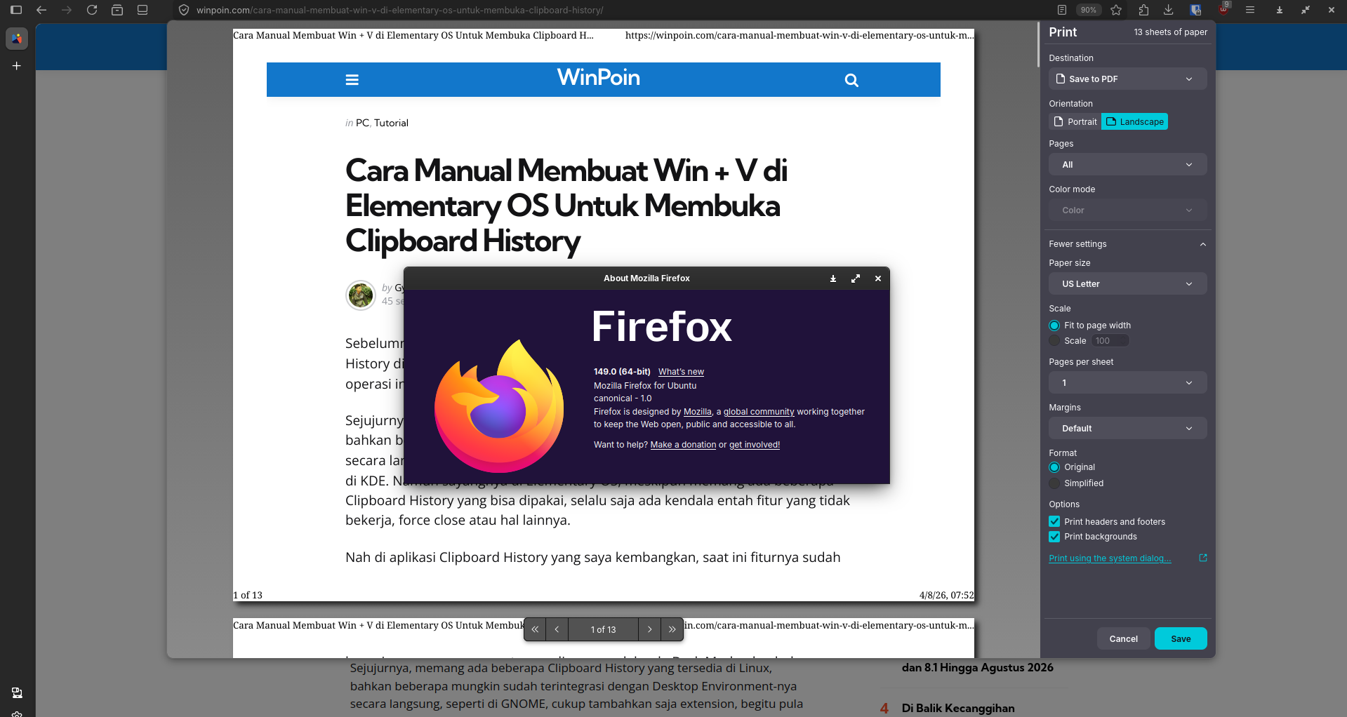 Untuk pengguna yang memang mengandalkan Firefox sebagai browser utama dan memang kadang digunakan untuk printing, bug ini cukup menyebalkan, namun kabar baiknya dengan update versi 149.0.2 ini, masalah sudah resmi diperbaiki.