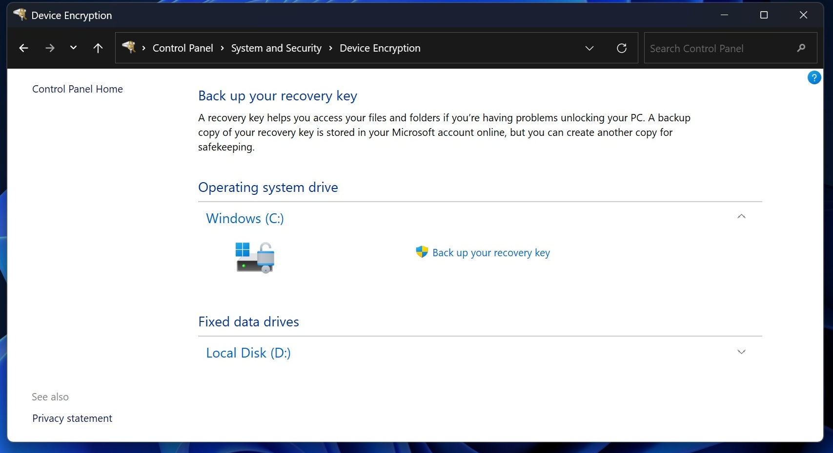 Namun jika kamu ingin fitur tetap aktif, pastikan kamu telah melakukan backup recovery key dan simpan di lokasi yang aman, misalkan flash drive atau onedrive, caranya kamu bisa masuk ke Control Panel > System and Security > Device Encryption dan pilih Back up your recovery key.