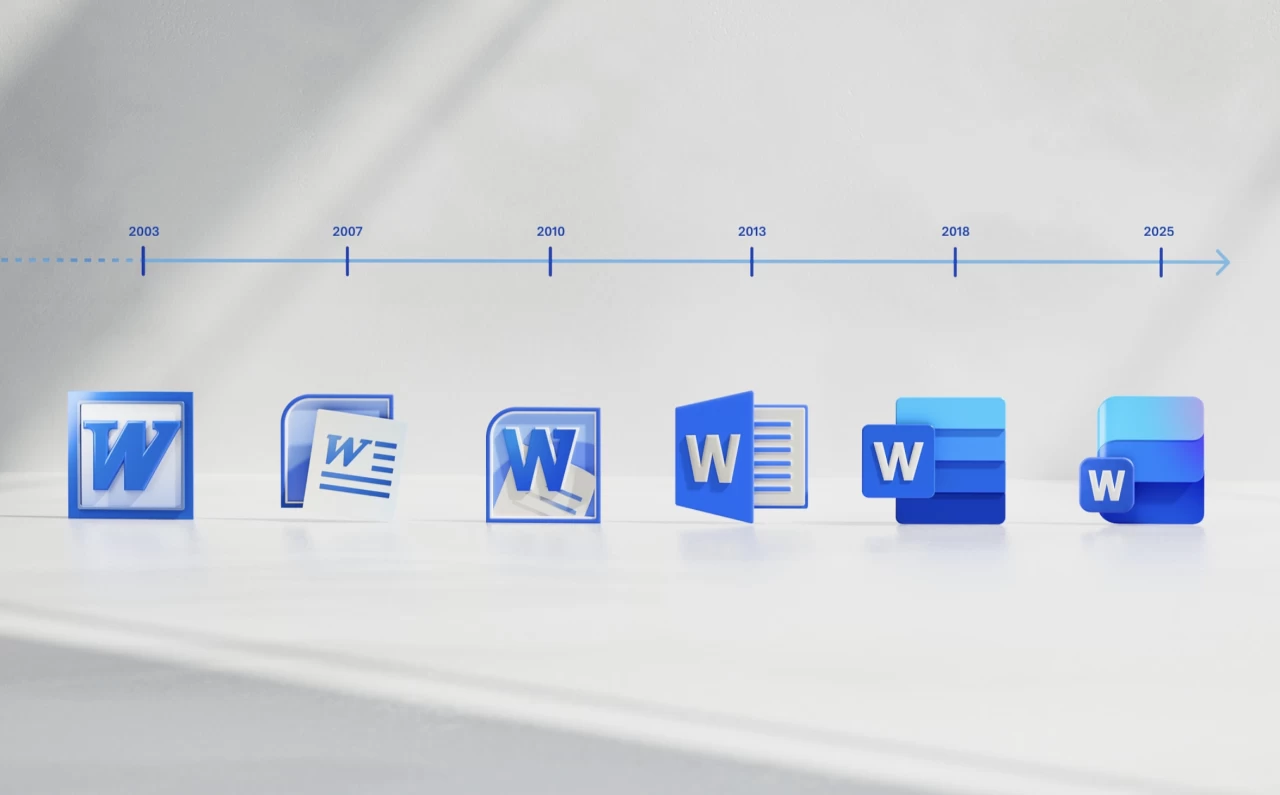Seperti pada gambar diatas, setiap varian menunjukan pendekatan visual yang berbeda, mulai dari ikon berbasis huruf hingga desain abstrak tanpa huruf sama sekali. Nah jika kita lihat secara historis, ikon Office selalu terdiri dari dua elemen: huruf (seperti W untuk Word) dan representasi dokumen, slide, atau spreadsheet.