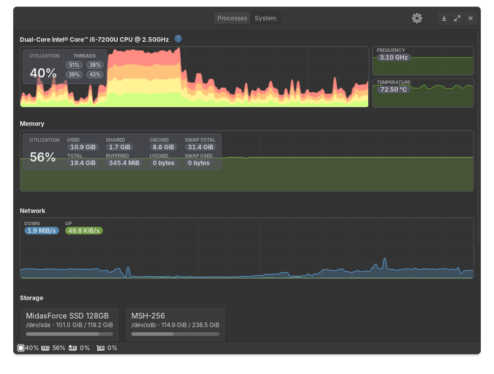 Pemakaian resourcenya pun tidak terlalu berat, saat ini dengan membuka banyak tab browser dan aplikasi, penggunaan RAM nya pun sangat minimal.