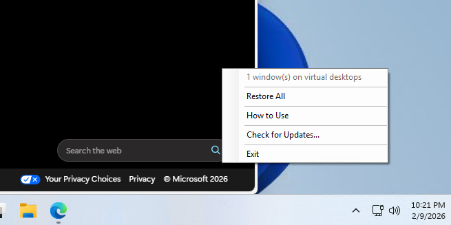 Fungsi dari tool ini sederhana, yaitu memunginkan jendela Maximize agar langsung terbuka di Virtual Desktop baru.