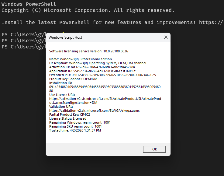 Untuk mengecek jenis lisensi ini, kamu bisa buka Powershell atau Command Prompt dan ketik perintah slmgr /dlv.