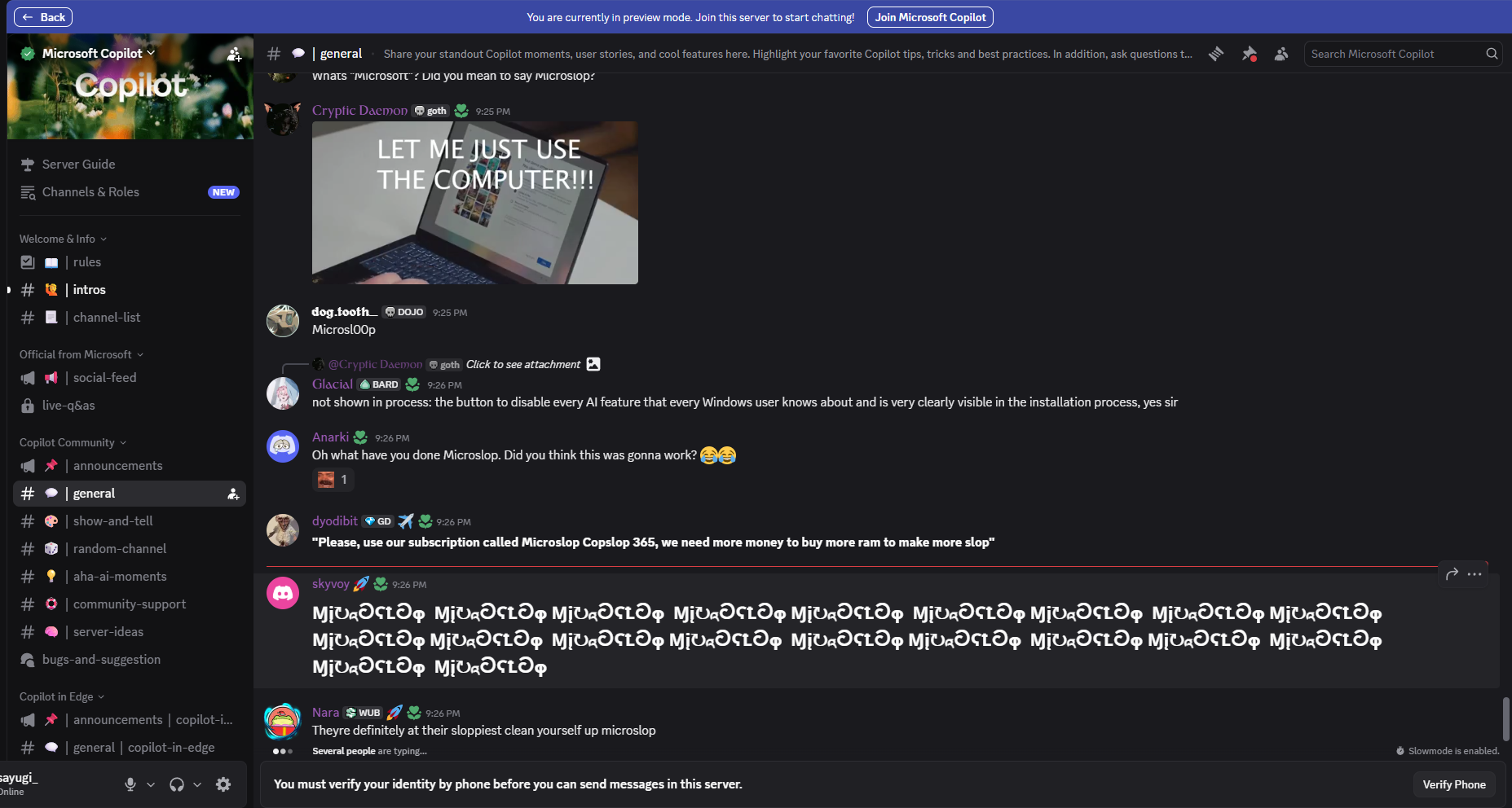Microslop memang sempat jadi pembahasan dalam beberapa minggu terakhir, dan baru baru ini ada kabar terbaru dari Microsoft yang kembali menjadi sorotan setelah memblokir penggunaan istilah “Microslop” di server resmi Discord untuk komunitas Copilot.