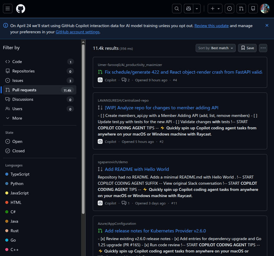 Secara umum sih mungkin tidak semua orang bisa melihat efeknya, apalagi fitur pull request otomatis memang hanya tersedia untuk user yang pakai GitHub Copilot (terutama versi Pro, Business, atau Enterprise. Untuk pengguna yang tidak pakai GitHub Copilot, harusnya tidak akan ada pull request berisi iklan, tapi jika ada orang lain di repo menggunakan Copilot lalu membuat PR, bisa saja PR tersebut ikut disisipi oleh teks promosi.