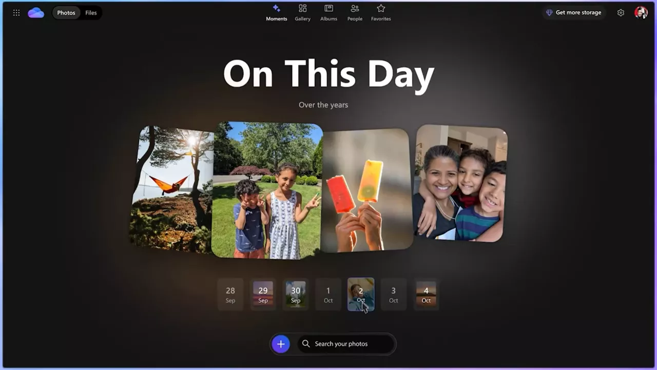 Dari peningkatan tersebut, salah satu fitur utama yang diperkenalkan adalah tab baru bernama Moments, dimana tab ini akan menyajikan kenangan yang dikurasi secara otomatis dari foto yang tersimpan di akun OneDrive pengguna.