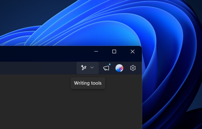 Seperti yang diungkapkan leaker @phantomofearth di X, pada update terbaru Notepad di Insider versi 11.2512.28.0, bagian tombol Copilot telah berubah nama menjadi Writing tools dengan icon sparkly pen.