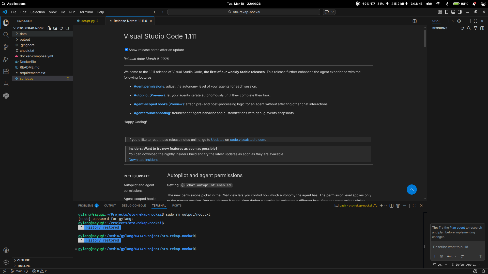 Nah selain menghadirkan perubahan ini, Visual Studio Code versi 1.111 juga membawa beberapa fitur baru lain termasuk Autopilot dan agent permissions yang bisa diaktifkan melalui pengaturan chat.autopilot.enabled, dengan ini, pengguna bisa mengatur seberapa besar kontrol yang diberikan kepada agent AI ketika menjalankan tugas di dalam editor.