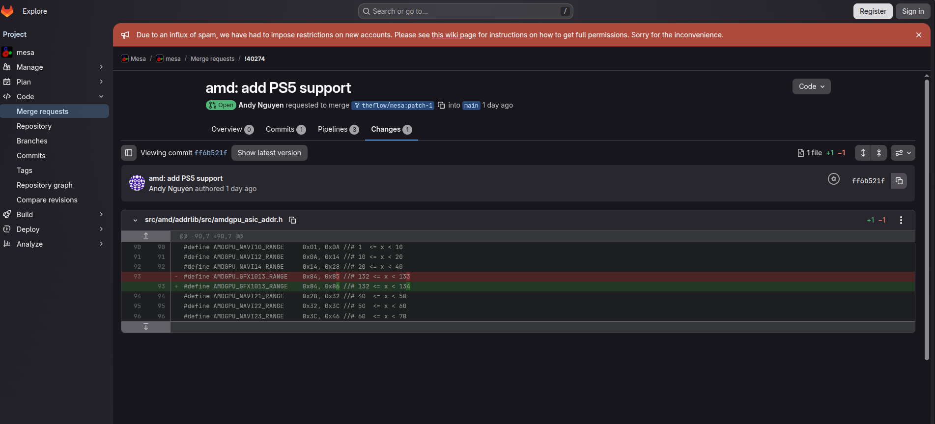 Ia bahkan mengirimkan merge request ke proyek tersebut untuk menambahkan dukungan langsung terhadap GPU PS5.
