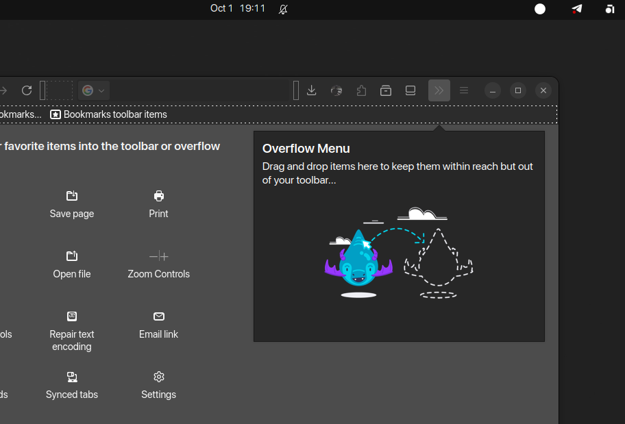 - Bug yang merusak tab Customization dan keyboard shortcut saat membuka pengaturan ekstensi dari prompt pasca-instal kini telah diperbaiki (Bug 1983869).