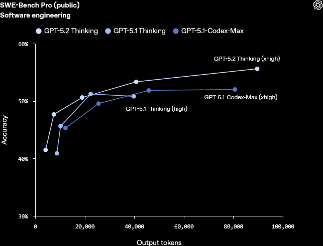 Dalam tabel tersebut, GPT‑5.2 mencatat skor 55,6% pada benchmark SWE‑Bench Pro dan 80% pada SWE‑Bench Verified, dimana ini menunjukan peningkatan signifikan dalam debugging dan impelementasi fitur secara lebih handal.
