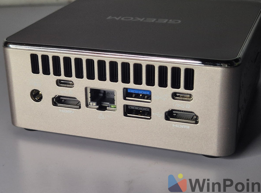 Kemudian dibagian belakang, kita akan mendapatkan lebih banyak Port konektivitas dengan 1x USB 3.2 Gen 2 Type A, 1x USB 2.0 Type A, 2x USB 3.2 Gen 2 Type C yang mendukung Power Delivery, 2x HDMI 2.0 yang mendukung output ke monitor / TV, 1x Ethernet Port dengan kecepatan hingga 2.5 Gbps dan 1x port power untuk daya perangkat.