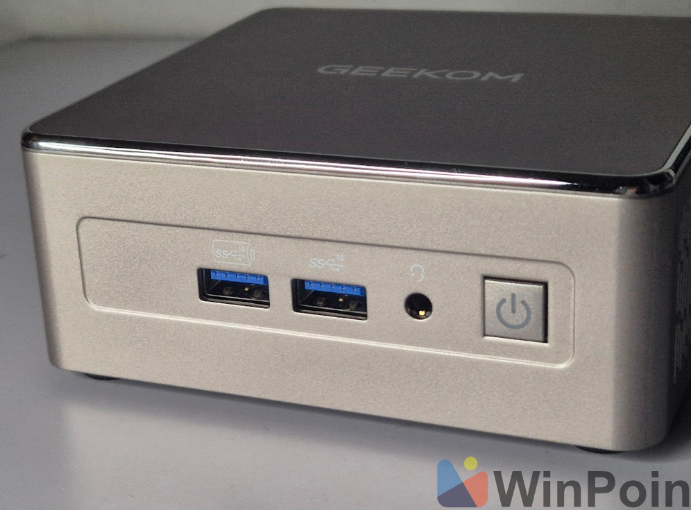 Salah satu hal yang wajib ada dari sebuah Mini PC adalah jelas konektivitasnya yang harus sesuai dengan kebutuhan pengguna, dan GEEKOM A5 R7-5825U ini sudah menyediakan semuanya, port yang diberikan sangat lengkap, dibagian depan kita akan mendapatkan 2x USB 3.2 Gen 2 yang salah satunya mendukung Power Delivery, 1x Headphone Jack 3.5mm dan tombol Power.