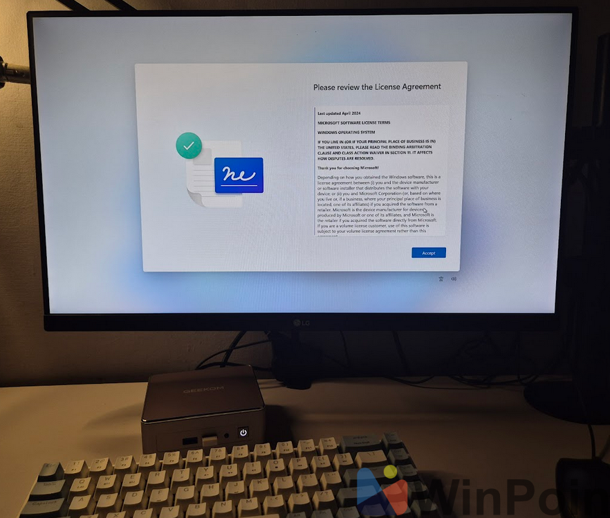 Nah setelah proses setup di meja, ketika Mini PC ini dinyalakan, kita akan langsung dihadapkan dengan proses setup Windows 11 yang dalam paket yang saya dapatkan ini sudah menggunakan Windows 11 Pro versi 24H2 Build 2600.3476.