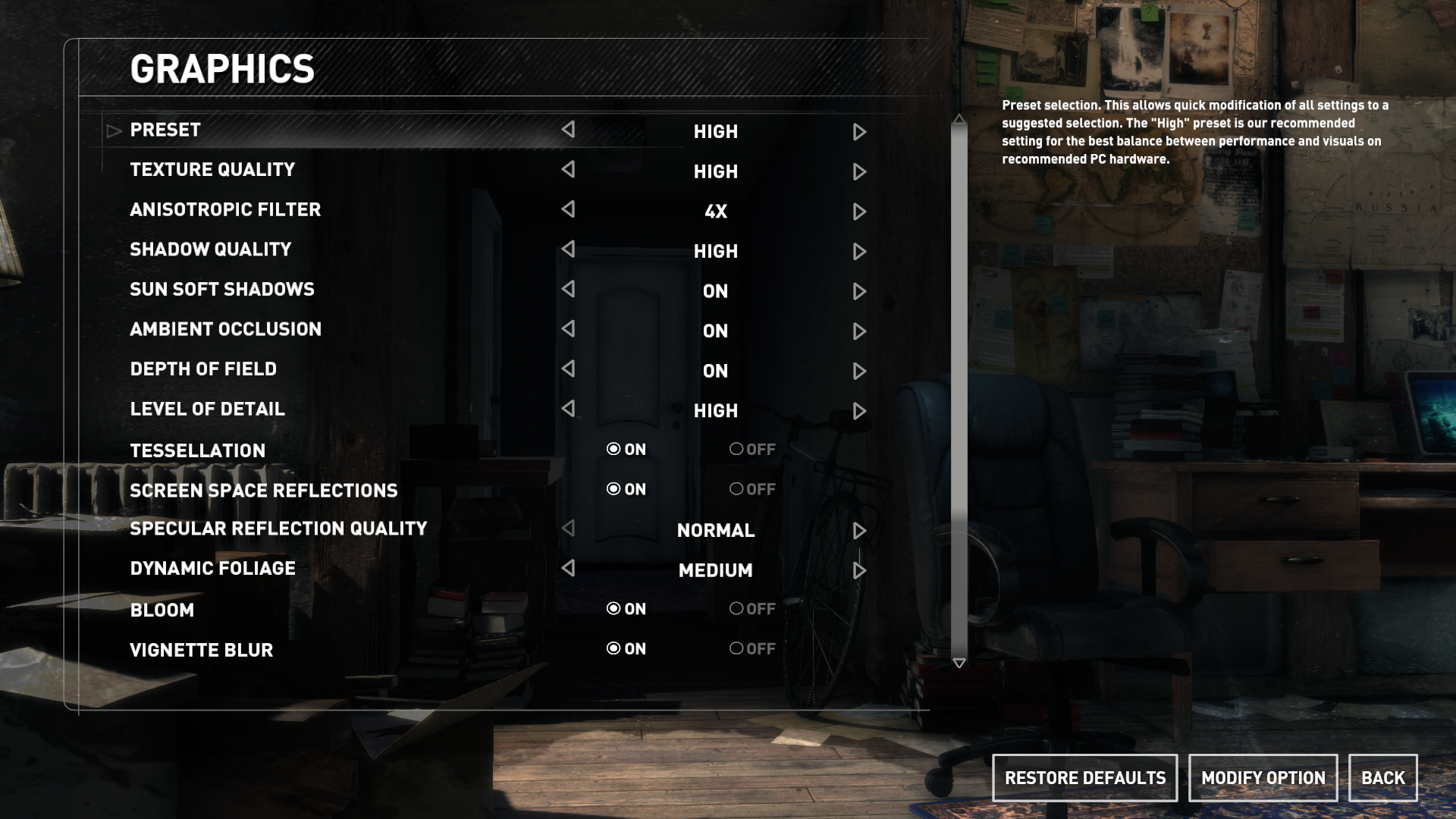 Jika pengaturan grafik kita ulik lagi dengan mematikan beberapa hal seperti misalkan bloom, mengurangi kualitas tekstur dan mengubah resolusi ke 720p, performa game akan lebih nyaman dengan game yang berjalan stabil di atas 35 FPS.