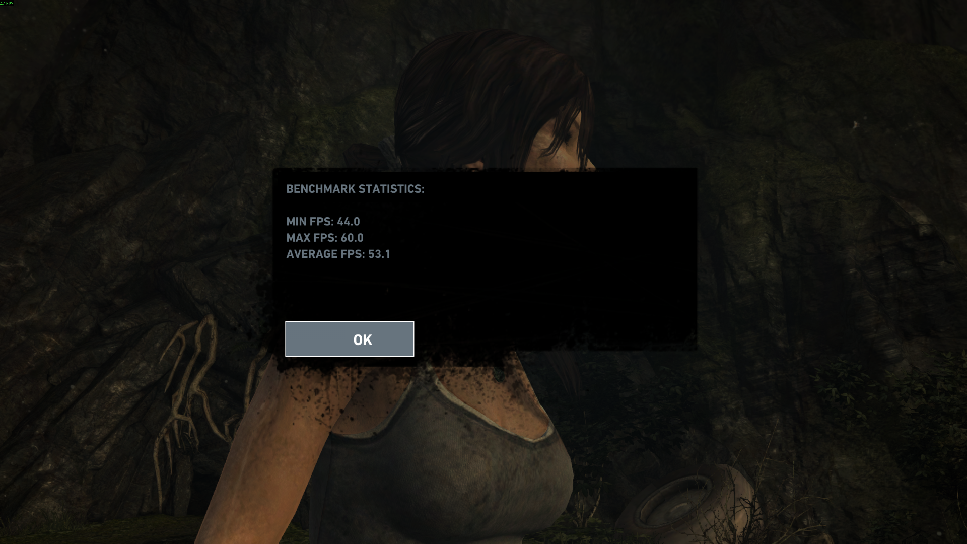 Selain itu, hasil Benchmark di Tomb Raider 2013 juga menujukan hasil yang juga cukup baik dengan rata rata di 53.1 FPS dan minimal di 44 FPS pada settingan graphic default di 1080p.