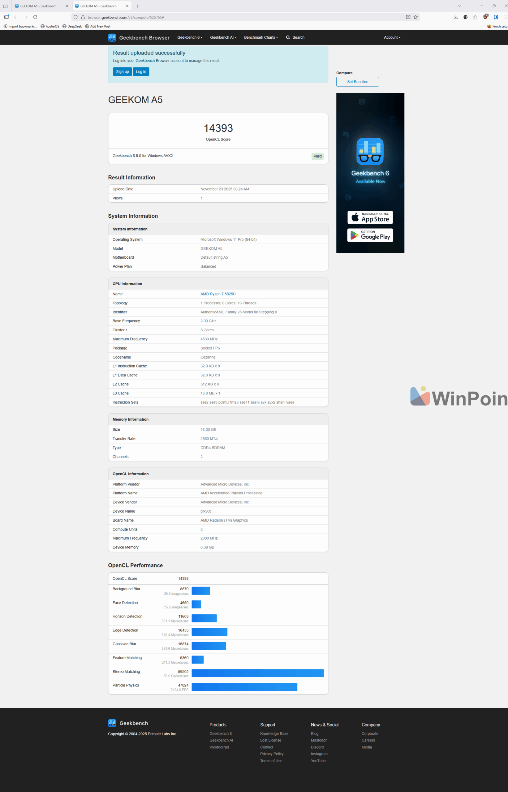 Biar makin mantap, mari kita lakukan uji coba benchmark dengan aplikasi Geekbench 6 andalan banyak orang, dimana hasil dari CPU Benchmark terlihat bahwa GEEKOM A5 R7-5825U sudah sangat cepat, lebih cepat dari semua perangkat yang pernah saya coba karena memang Ryzen 7 5825U ini sudah masuk ke kategori salah satu prosesor paling kencang dikelasnya.