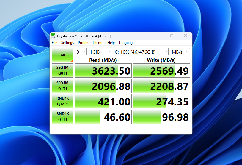 Kecepatan dari SSD NVME ini juga sudah bisa dibilang sangat cepat dengan hasil pengujian tembus hingga 3623 Mbps untuk Read dan 2569 untuk Write. Jelas ini sudah sangat mantap bukan? dengan ini, transfer data bisa makin maksimal dan menghemat waktu.