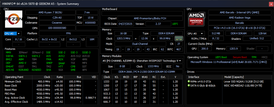 Sementara dari sisi storage, GEEKOM A5 R7-5825U sudah menggunakan SSD NVME yang preinstalled dengan berkapasitas 512 Gb dan jelas ini sudah cukup untuk menyimpan Windows, Aplikasi dan berbagai file pekerjaan utama.
