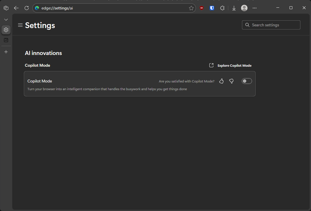 Nah untuk mengakali hal tersebut, saya mengubah tampilan new tab menjadi default tanpa Copilot, cukup masuk ke halaman Settings > disable Copilot Mode (jika sudah aktif secara default).