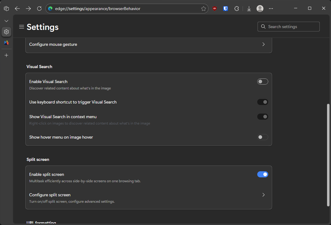 Hasilnya biasanya berupa informasi produk, gambar serupa, lokasi, atau penjelasan singkat terkait objek yang terdeteksi. Tapi saya tidak butuh fitur ini, jadi saya nonaktifkan saja, caranya sederhana, cukup masuk ke Edge Settings > Browser Behavior > Matikan opsi Visual Search.