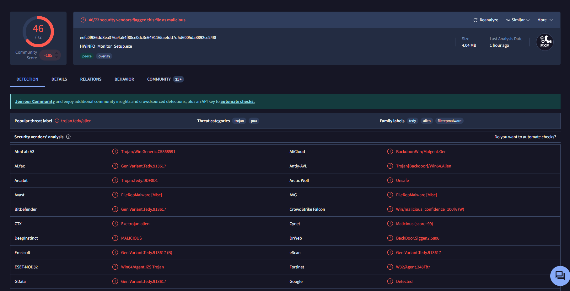 Nah serangan ini berlangsung selama kurang lebih 6 jam sebelum akhirnya diatasi oleh pihak CPUID. Jadi kawan kawan, awalnya kasus ini pertama kali terungkap dari pengguna Reddit yang curiga saat mencoba update HWMonitor versi terbaru, karena alih-alih file normal, ia mendapatkan installer dengan nama mencurigakan yaitu HWiNFO_Monitor_Setup.exe.