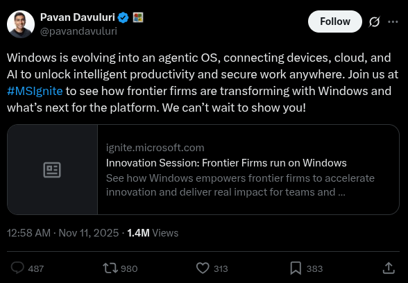 Nah secara umum sih berdasarkan apa yang dijelaskan Microsoft, Agentic OS ini berarti Windows berevolusi menjadi AI-driven operating system, yang mana sistem ini dirancang agar bisa mengenali maksud pengguna, bukan hanya sekedar instruksi literal saja.